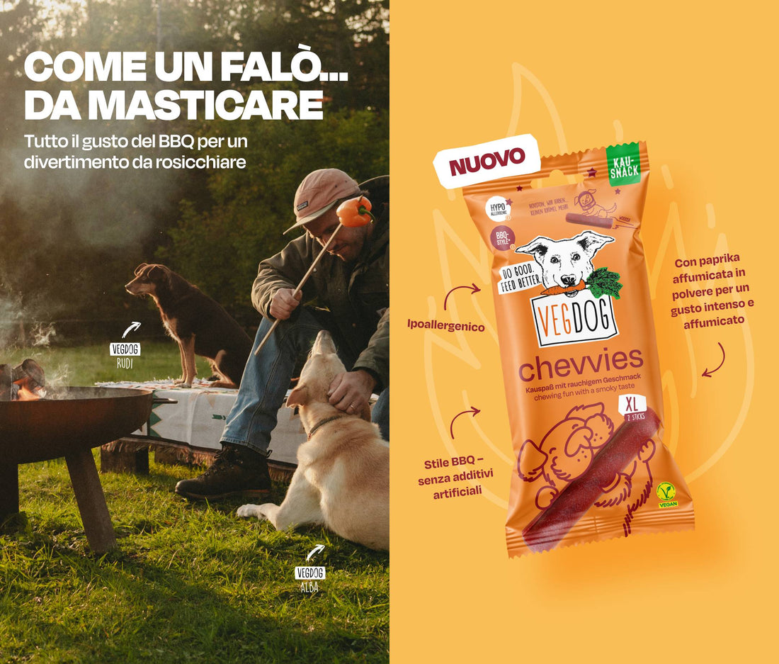 VEGDOG ist das erste pflanzliche und glutenfreie Alleinfuttermittel für Hunde. Es hat eine einjährige Entwicklungsphase durchlaufen und wurde in Zusammenarbeit mit TierärztInnen und Fachlaboren aufgrund der Futtermittelallergie von Nelson entwickelt, dem Hund unserer Gründerin Tessa.
