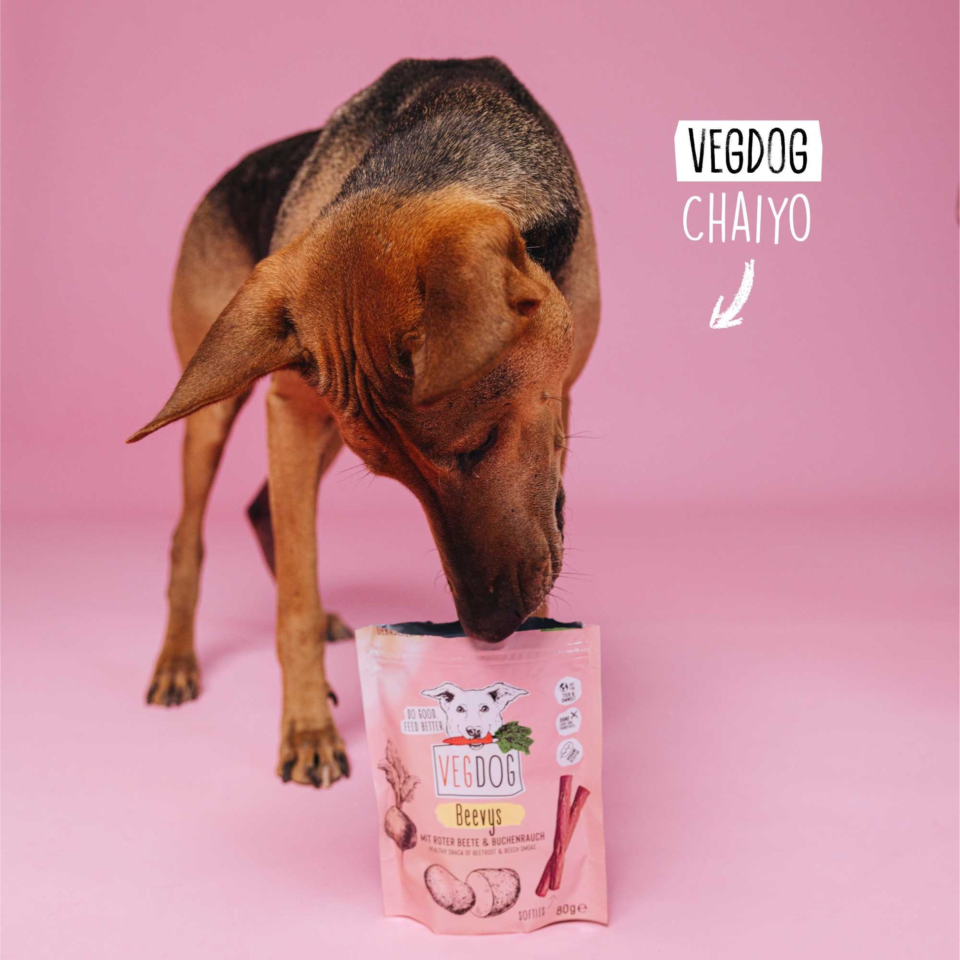 Hunde lieben unsere VEGDOG Leckerlis mit kräftigem Buchenrauch-Aroma. Rote Bete schmeckte noch nie so gut wie in diesem gesunden und veganen Snack.
