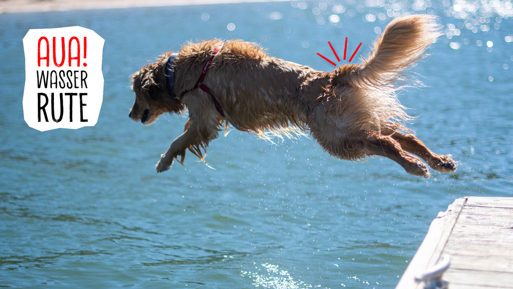 Achtung bei kleinen Wasserratten: Viele Hunde lieben es zu schwimmen – doch gerade nach ausgiebigem Planschen kann es zu schmerzhaften Muskelentzündungen im Schwanzbereich kommen, der sogenannten Wasserrute. Beim Schwimmen nutzen Hunde ihre Rute zur Steuerung, was die Muskulatur stark beansprucht. Wird sie dabei überlastet, kann es zu Schmerzen kommen. Typische Symptome sind Schmerzen beim Wedeln, daher wedelt der Hund nur noch leicht oder lässt die Rute komplett hängen.