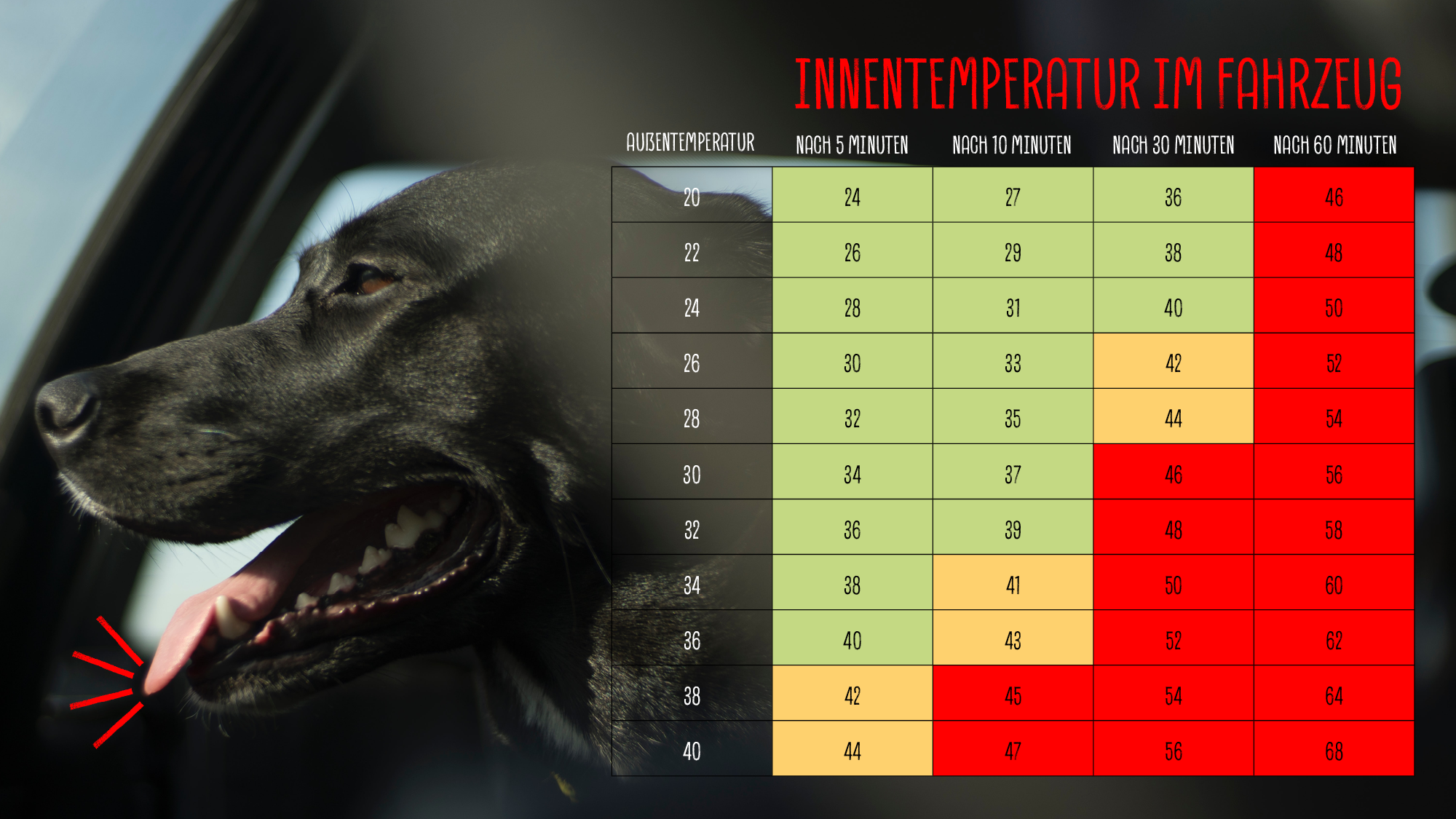 Lass deinen Hund bei Hitze niemals alleine im Auto