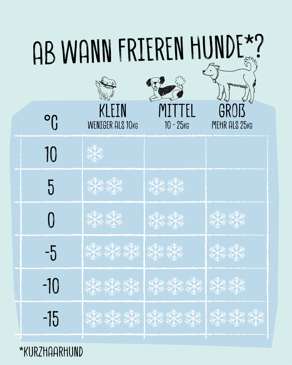 Bevor es rausgeht: Braucht dein Hund einen Mantel? Sind die Pfoten geschützt? Nimm ein bisschen Wasser mit, um die Pfoten unterwegs abspülen zu können. Bei extremen Temperaturen halte die Spaziergänge lieber kurz und kuschelt euch danach ins Warme.