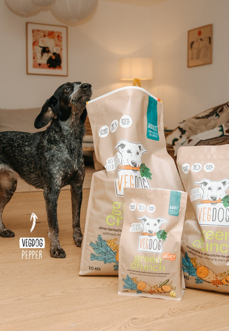 I nostri prodotti contengono tutta la potenza delle piante! Lenticchie, piselli, lupini e altro ancora apportano proteine ai nostri prodotti e favoriscono una sana funzione muscolare del cane